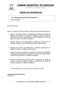 Camara Municipal de Nanuque – No exercício das funções legislativas de fevereiro de 2026, o Vereador Jesualdo Pereira Damascena protocolou uma série de Pedidos de Providências junto à Prefeitura Municipal de Nanuque. As solicitações focam em infraestrutura, saneamento, iluminação e saúde, com atenção especial às necessidades imediatas do distrito de Vila Pereira.
